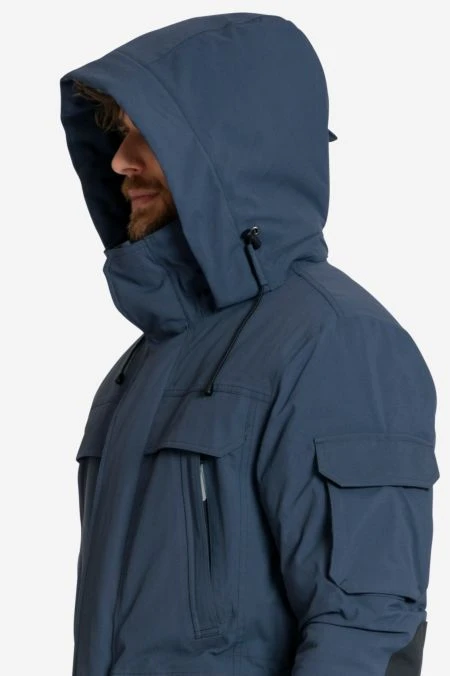 Dieser superwarme Winterparka hat 11 Taschen und eine vertikale Regenrinne. Eine was? Ja! Die Regenrinne ist nur eins der vielen cleveren Details dieser wind- und wasserdichten Winterjacke. Sie verdeckt den Front Reißverschluss und sorgt dafür, dass schräger Regen abläuft. Die perfekte Ergänzung zur atmungsaktiven Membran und komplett versiegelten Nähten, also allem, was deine Jacke wasserdicht macht. Das ist REAL STUFF für Männer, die die Kälte lieben – aber nicht gern frieren! Passt ins Winter Camp nach Island, auf dem Bike ins Büro oder mit Freunden im Forst. In diesem Parka lehnst du noch relaxt am Baum, wenn deine Kumpels schon mit den Zähnen klappern. Hergestellt in nachhaltiger Elkline Qualität: Der Oberstoff ist bluesign® zertifiziert, die Membran lösungsmittelfrei, Innenfutter und Wattierung sind aus recyceltem Polyester.